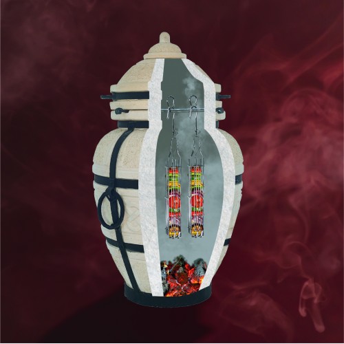 Тандыр Сармат Дастархан NEW — обновленная версия тандыра Дастархан. Тандыр Дастархан — отличный выбор для больших компаний любителей вкусно поесть. Двенадцать длинных кованых шампуров способных удержать по килограмму (и даже больше!) мяса каждый и оригинальная конструкция самой печи позволяют приготовить горы отличного шашлыка за несколько минут. При этом за счет усиленной конструкции и большей толщины стенок жар внутри тандыра спадает не ранее чем через три часа после первой закладки, что позволяет приготовить несколько разных блюд в любой последовательности, или просто накормить целую свадьбу вкусным свежеприготовленным шашлыком за считанные минуты! Размеры тандыра: