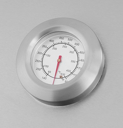Крышка гриля снабжена встроенным термометром. Он позволяет выбрать подходящий температурный режим для разных продуктов. Благодаря термометру контролировать уровень жара в гриле можно, не открывая крышку и не приобретая дополнительные аксессуары.
