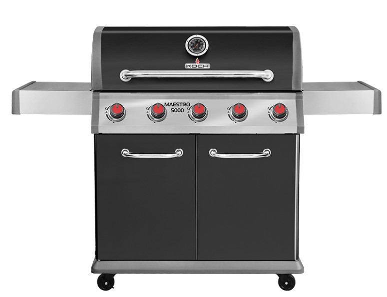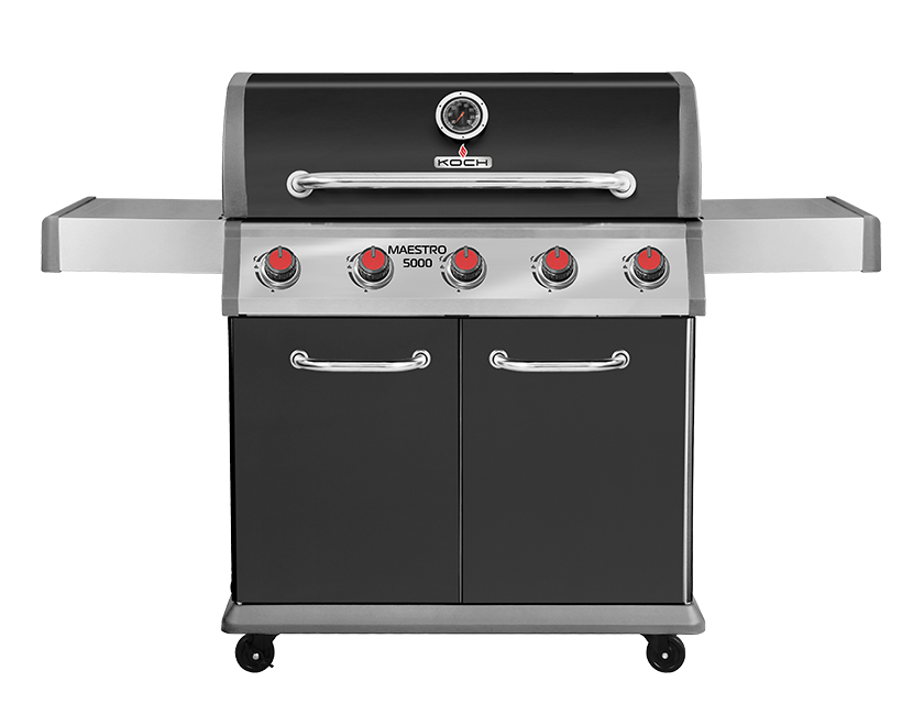 aestro 5000 – газовый гриль с 5-ю горелками, на котором вы с легкостью сможете готовить сразу несколько блюд, используя разные температурные зоны. На чугунной решетке свободно помещается 15 стейков! Гриль отлично подходит для запекания дичи на решетке или вертеле.