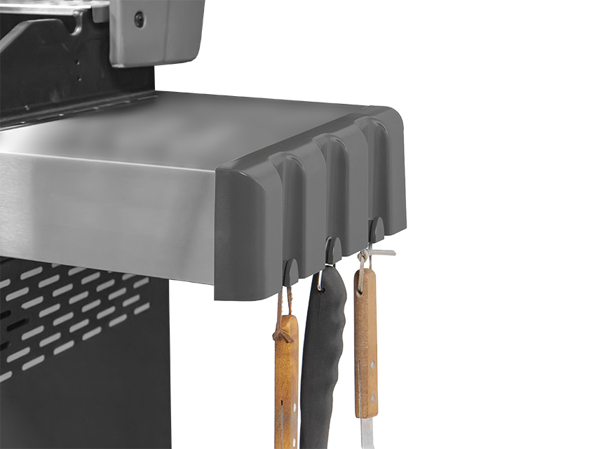 Над всеми горелками установлены отсекатели жара, покрытые эмалью. Они обеспечивают равномерное нагревание чугунной решетки и защищают горелки от капель жира, которые могут вызвать воспламенение или забить отверстия. Еще одна функция отсекателей жара – придание блюдам дымного аромата барбекю.