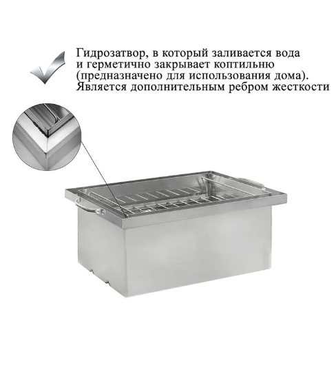 ⭐ Основные преимущества коптильни LUX PREMIUM Нержавеющая сталь AISI 304 — высокая прочность, безопасность для продуктов и устойчивость к коррозии Толщина стенок корпуса 2 мм — надёжность и долговечность Крышка толщиной 1,5 мм — стабильная геометрия при нагреве Рёбра жёсткости на дне — защита от деформаций при использовании на плите Гидрозатвор с водой — полная герметичность и возможность использования в помещении Купольная крышка — предотвращает стекание конденсата на продукты Надёжный термометр (50–350°C) — точный контроль температуры Съёмная трубка из нержавеющей стали — безопасное отведение дыма в помещении Двухъярусные решётки и поддон для жира — равномерное копчение и чистота щепы