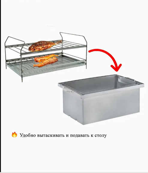 Удобство и продуманная конструкция Коптильня оснащена удобными боковыми ручками, расположенными максимально высоко от дна — они меньше нагреваются и не имеют острых краёв. Съёмная ручка с ребром жёсткости отличается эргономичным дизайном и удобством при переноске. Двухъярусная корзина с вынимающимися решётками выполнена из пищевой нержавеющей стали. Минимальная площадь соприкосновения решёток с продуктами обеспечивает равномерное копчение, а вся конструкция легко вынимается одним движением.