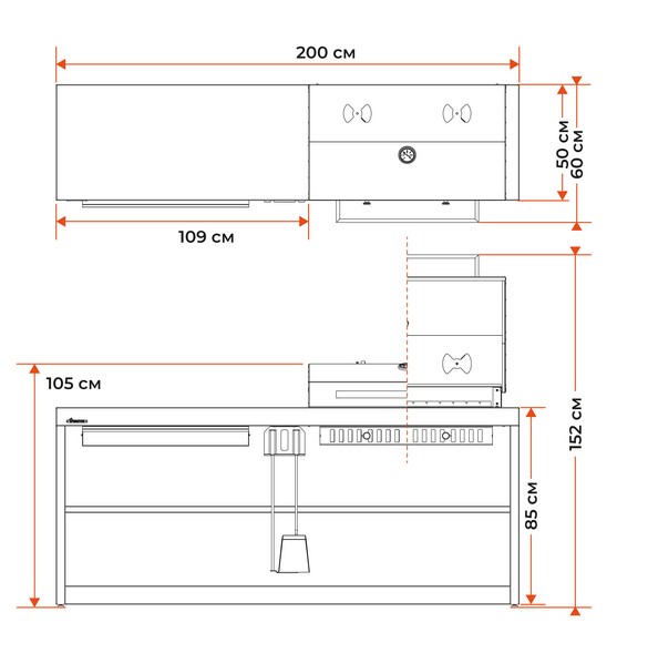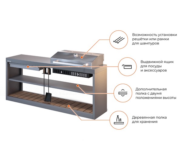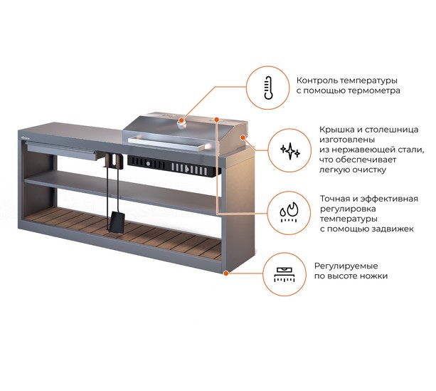 Это комбинированное решение для тех, кто хочет пользоваться современным функциональным грилем с комфортом, но при этом сэкономить на занимаемом пространстве.