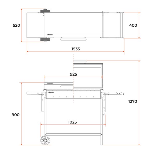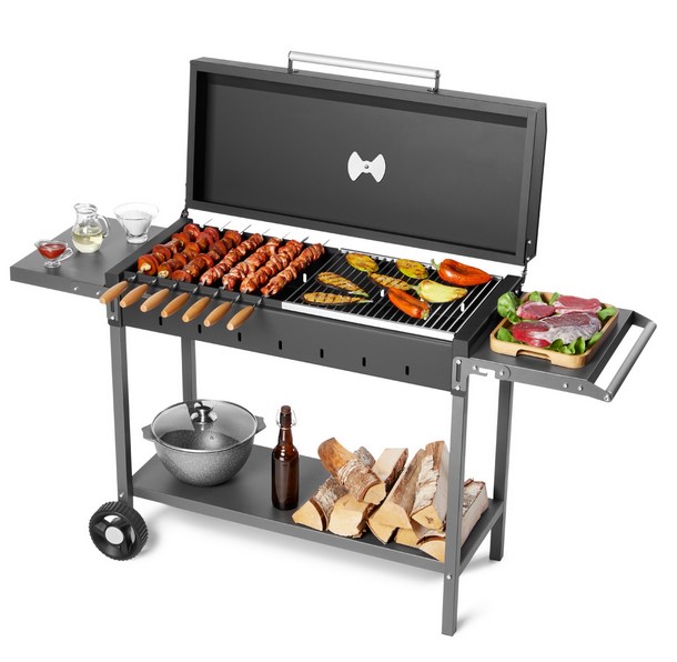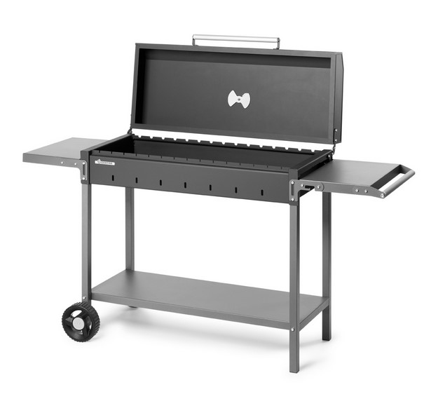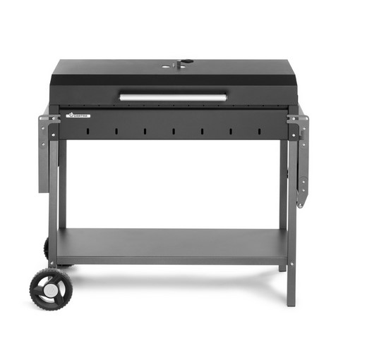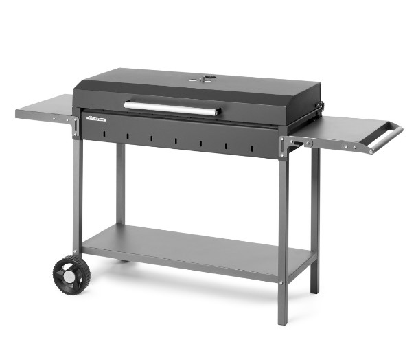 Вместительный гриль-мангал из толстой стали со складными полками и крышкой барбекю.