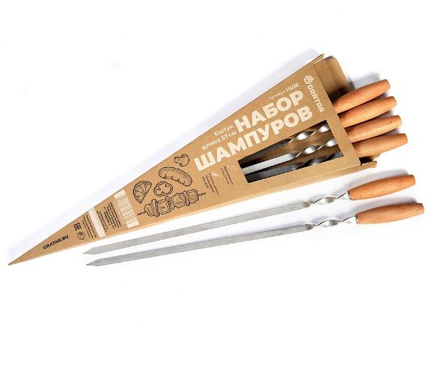 Шесть долговечных шампуров длиной 57 см. Подходят ко всем нашим мангалам