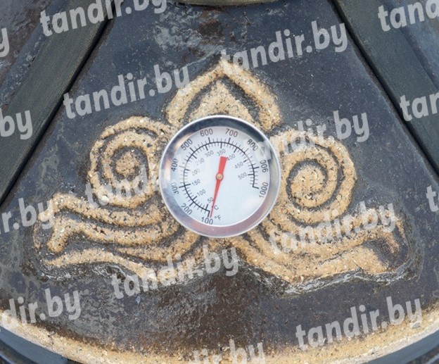 Тандыр покрыт глянцевой глазурью черного цвета с золоченым орнаментом.