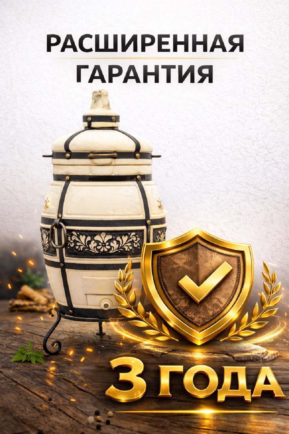 Тандыр «Казачий» — мощь, объём и надёжность для настоящей кухни Тандыр «Казачий» — это прочная и функциональная керамическая печь, созданная для тех, кто ценит удобство, большой объём и настоящий вкус блюд, приготовленных на живом огне. Благодаря высокой теплоёмкости, тандыр в разогретом состоянии удерживает жар от 2 до 4 часов, обеспечивая стабильную температуру на протяжении всего процесса приготовления. Увеличенный объём тандыра и толстые стенки толщиной 6 см позволяют приготовить за один розжиг до 5 кг мяса, а также множество других блюд: рыбу, овощи, лепёшки, хлеб и традиционные блюда восточной кухни. Продукты получаются сочными, ароматными и равномерно пропечёнными. Тандыр изготовлен из экологичной керамики и обладает отличными эксплуатационными характеристиками: высокой теплопроводностью, прочностью и устойчивостью к высоким температурам. Надёжная конструкция обеспечивает долгий срок службы — более 10 лет при правильной эксплуатации. Модель установлена на специальной подставке под тандыр, которая обеспечивает устойчивость, безопасность и удобство использования. Подставка улучшает циркуляцию воздуха и делает процесс приготовления ещё более комфортным. Тандыр «Казачий» идеально подойдёт для загородного дома, дачи или зоны барбекю, сочетая в себе практичность, долговечность и классический дизайн.