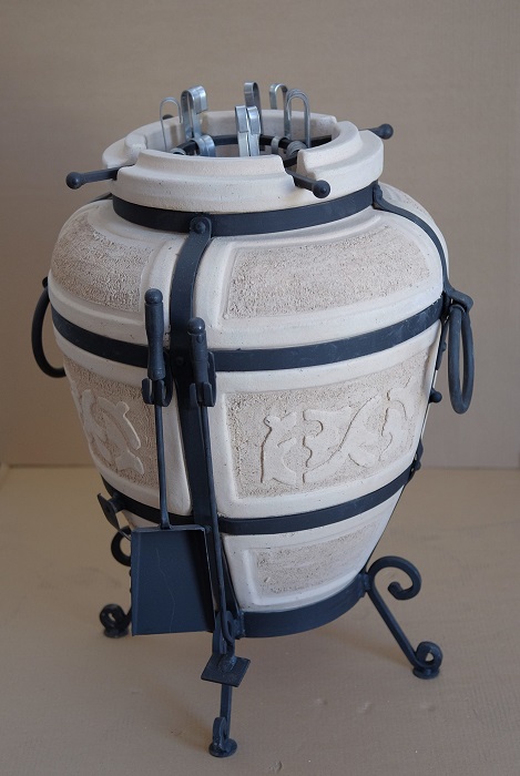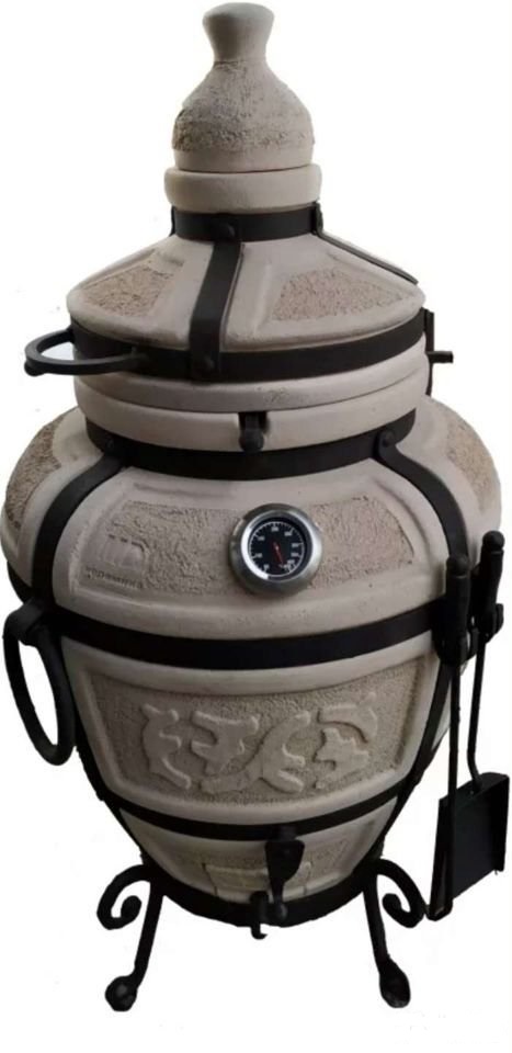 Комплектация 1. Шампур специальный - 10 штук. 2. Солнышко для навески шампуров - 1 штука. 3. Инструменты (кочерга и совок). 4. Колосник 5. Термометр 6. Ножки для тандыра