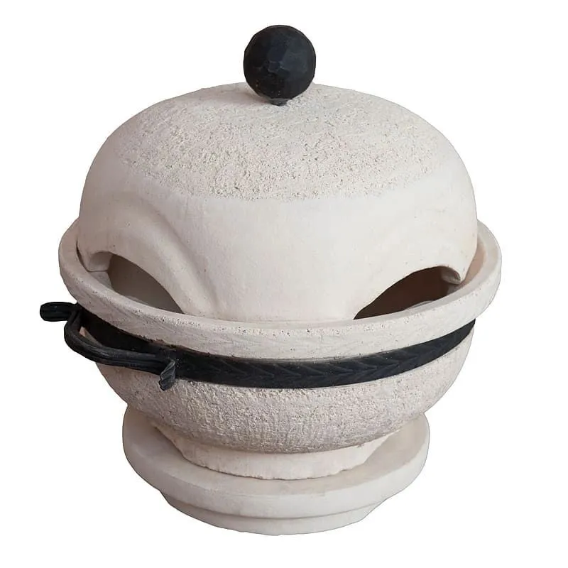 Всем известен неповторимый вкус еды, приготовленной на огне… Это неотъемлемая часть праздника, отдыха, выходных… Жаровня-гриль настольная от фирмы Амфора станет для Вас незаменимым помощником, как в приготовлении самостоятельных блюд на гриле, так и в быстром разогревании остывшего мяса, ведь все сталкивались с такой ситуацией – тандыр растопили, пожарили мясо-овощи и пр – подали на стол, разложили по тарелкам, начали трапезничать, но … за теплой беседой и тостами, неожиданно, все остыло… Не бежать же опять к большому тандыру… Собственно, как маленький настольный помощник большого тандыра и была разработана жаровня-гриль настольная, но, как оказалось, она очень хороша как и самостоятельное изделие – своего рода настольный гриль-фондю, стоящий в центре стола, на котором каждый может реализовывать свои кулинарные фантазии – поджарить овощи, хлеб, грибы, тот же стейк, и пр и пр…Быстро и легко Жаровня-гриль настольная чрезвычайно проста в использовании. Разжигать ее мы рекомендуем с открытой крышкой. Для розжига рекомендуем использовать прессованные топливные брикеты – их срок горения в разы дольше как обычных дров, так и древесного угля. Также, для более быстрого розжига брикетов рекомендуем использовать любую специальную сертифицированную жидкость для розжига. Топливные брикеты в количестве 1-1.5 кг дают тепло, достаточное как для разогрева, так и для приготовления новых блюд, на протяжении не менее 4-5 часов. Настольная жаровня-гриль изготовлена нашей компанией из высококачественного сырья. Это делает ее прочной и долговечной. Керамический материал также действует как аккумулятор тепла, что снижает потребление топлива.Здоровый гриль Настольная жаровня-гриль позволяет Вам следить за своим здоровьем! Продукты, приготовленные на ней, так же, как и в тандыре, не имеют прямого контакта с пламенем, имея тем временем вкус и аромат блюд, приготовленных на открытом огне.Разносторонняя… Она прекрасно подойдет для использования в любом месте на свежем воздухе – во дворе, на террасе, в саду… она может сопровождать вас на пикники, в походы или на пляж… Состав, размеры и вес изделий Жаровня-гриль настольная состоит из 4 частей: Подставка, чаша огневая, крышка, решетка гриль из нержавеющей стали d.29 см Диаметр 34 см Высота общая 35 см Вес 10,7 кг